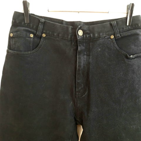 Myydään James Original -merkkiset miesten farkut, klassinen viisitaskuinen malli. Väri musta/harmaaksi pesty, kulutettu pinta antaa rennon ja käytetyn tyylin. Sopii arkikäyttöön. Materiaali farkkukangas, todennäköisesti puuvillasekoite. Kunto hyvä käytetty, pientä kulumaa erityisesti lahkeensuissa, ei reikiä. Vetoketjukiinnitys. Klassinen 5-taskuinen malli. James Original -nahkamerkki vyötäröllä