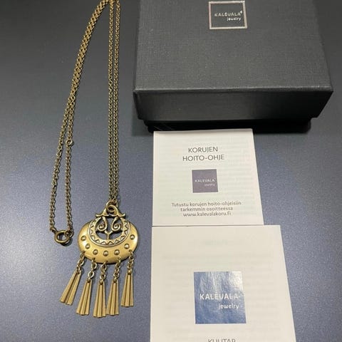 Kaunis, iso pronssinen Kalevalan Kuutar- kaulakoru. Suuri koko. Ketju 70cm. Riipuksen koko on 48cm × 7,7cm.