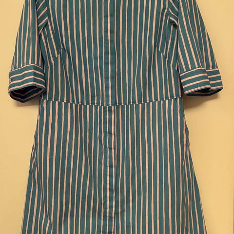Vain kerran käytetty, koko 36, 100% puuvillaa, musta-kellahtavabeige raidallinen. Sivusaumoissa taskut, mekkoon kuuluu samasta kankaasta tehty vyö, katsothan kaikki kuvat läpi. Kai-kai 55cm, olka-helma 100cm. Nouto Hki Roihuvuori tai postin pkulut päälle. Nopeat noudot etusijalla