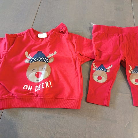 H&M jouluinen setti jossa body, housut ja panta. Housuissa takana koristepitsi