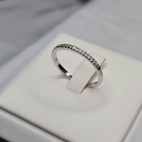 Hopeinen ruusukullattu sormus pyöreä kierre, koko 17. Valkoiset kivet/jäljitelmät.
