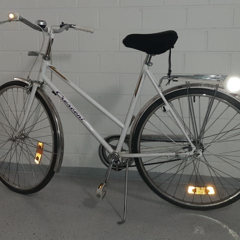 Crescent Hybridipyörä miehille, soveltuu monipuoliseen ajoon. Pyörä on varustettu takatavaratelineellä ja mukavalla satulalla. Sopii kaupunki- ja vapaa-ajan pyöräilyyn.