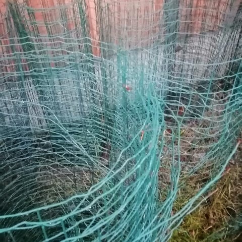 Siitä 100 metriä verkkoaitaa kahdessa osassa. Tämä on suht korkeaa, taitaa olla 180cm.