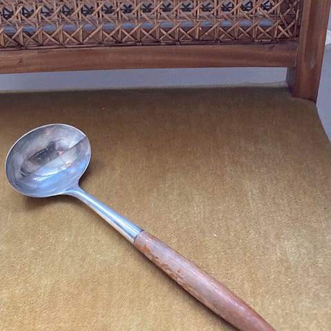 Kokkololaisen hopeasepän Thomas Lindbergin valmistama, vuonna 1901 leimattu hopeinen keittokauha, pituus 45 cm ja tilavuus 1 dl. Kauha on todella hyvässä kunnossa, erityisesti ikä, 123 vuotta, huomioiden. TL-leima, Thomas Lindberg toimi hopeaseppänä Kokkolassa 1872-1917. Neljäs hopealeima vasemmalta on Kokkolan kaupunkileima.