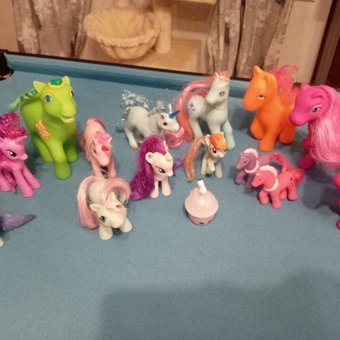 Eteenpäin my little poneja. Harjat takussa, osaa leikattu ja osassa tummentumaa/ piirrustus jälkiä. Eivät enään uudenveroisia, mutta kuitenki ehjiä yhtä yksi sarvista lukuun ottamatta, jolla hieman sarvea leikattu/syöty. Eiköhän joku näillä vielä hyvät leikit saa, joka jaksaa näitä vähän ehostaa. Nouto / tuonti omien menojen mukana /postitus
