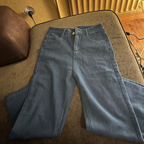 Farkkujakku,jonka pituus on 60cm ja kainalosta kainaloon 52cm.
