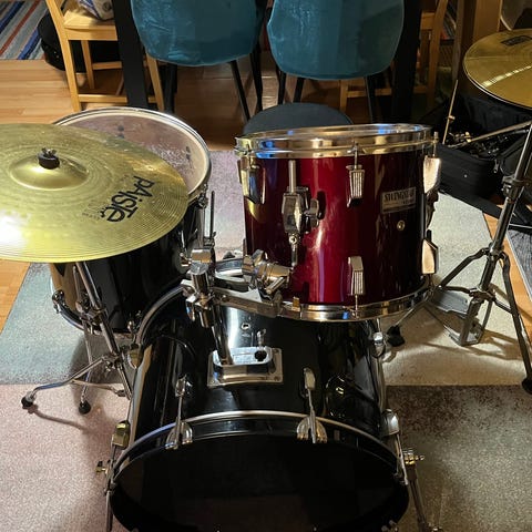 Tällainen klassikkosetti kiertoon vintage/roots -soundin ystävälle. Koot mitä parhaimmat: 20" basari, lattiatomi 16", tomit 13" ja 12". Shell-setti.
