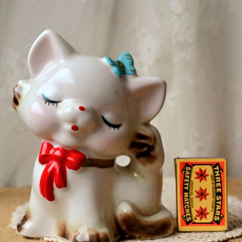 Kissa katti oranssi cat säästölipas raha pankki figuuri patsas vintage retro keräily koriste