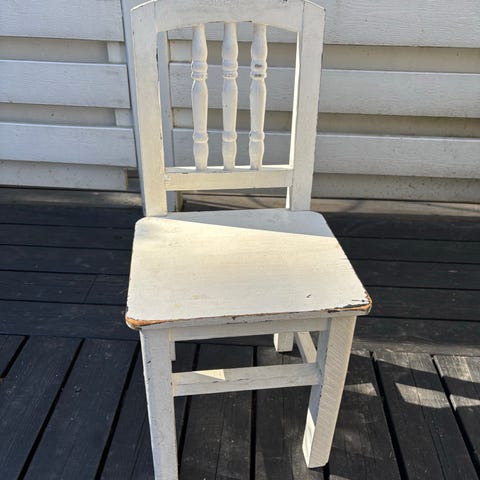 Lasten puinen tuoli. Maalipinnassa reunoissa kulumaa, mutta yleisilme hyvä.