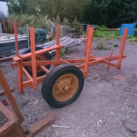 Rankakärry. Pohja ollut vaneria ja purettu pois, viime vuosine ajettu puita mettästä. Lavan pituus 270cm. (Koko pit.380cm). Laitojen kork.38cm, leveys 180cm. Takalaita on tallella.