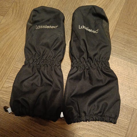 Siniset Lassietec välikausihanskat koko 0. Siistit, mutta kärjessä pinnassa pieniä reikiä.