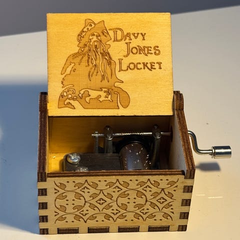 6.4*5.2*4.2cm Immerse yourself in the world of Westeros with this beautifully crafted wooden music box. Made from blue-stained, laser-cut wood, the box is adorned with intricate patterns on all sides. Open the lid to reveal the iconic "Game of Thrones" logo engraved inside. Simply turn the small hand-crank to play the epic and unforgettable main theme from the series. With its visible mechanical movement and battery-free operation, this music box is a perfect collectible and a must-have gift for any fan of the legendary show.