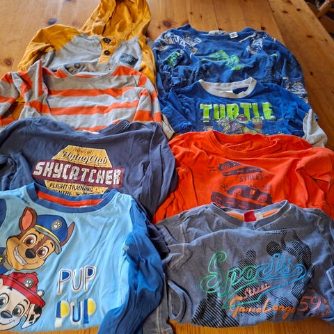 Lasten pitkähihaisia paitoja. Bogi, koko 98. Peuhu, koko 100. H&M, koko 98. My wear, koko 110. H& M, koko 98. Käytön jälkiä on.