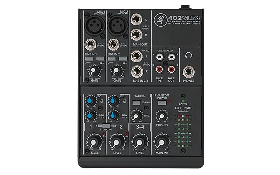 - Yhteensä 12 sisääntuloa: 4 mic+ 4 (XLR/TRS combo-liittimillä) sekä 2 stereoline tuloa