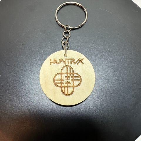 K-pop demon hunters tekstillä ja Huntrix logolla puinen avaimenperä