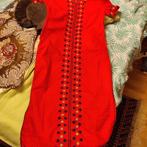 Uusi mekko vintage tyylinen 60 70 luvun retro M myös äitiysmekko trikoo