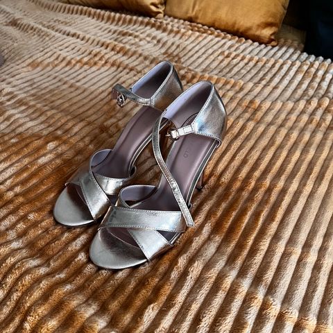 Ihanat kultaisen kimaltavat kengät. Hyvät jalassa.