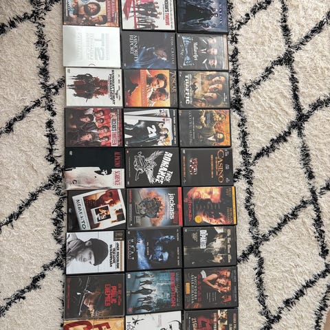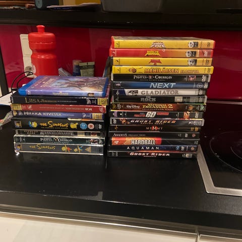 Kokoelma DVD-elokuvia ja TV-sarjoja useilta eri tuotemerkeiltä ja genreiltä. Sisältää.