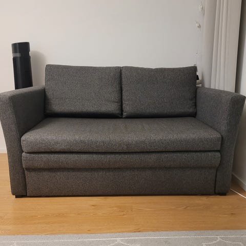 Sohva on uudenveroinen. Väri kaunis tummanharmaa. Nouto Helsingin Marjaniemestä, omat kantajat mukaan.