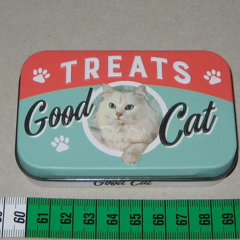 Cat food, peltinen säilytysastia, mitat noin 26x14x26cm, kuvien mukainen.Vain nouto.