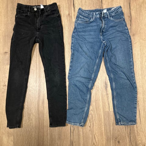 Myydään kahdet hm farkut koko 134. Vyötäröllä kiristysmahdollisuus. Väri vaaleanpunainen ja harmahtava musta/tumma. Vaaleanpunaisissa housuissa on pientä tahraa (katso lähikuvat). Muuten käytetty hyvä kunto. Kissatalous.