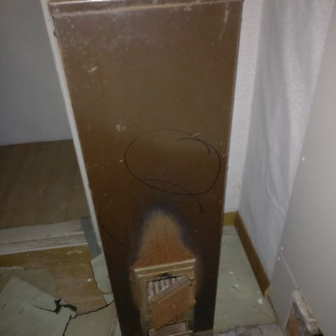 Käytössä oleva puuliesi. Korkeus 76,5cm, leveys 64cm+kaide 6,5cm ja syvyys 43cm +kaide 6cm. Hormin liitäntä on edestä katsottuna oikeassa reunassa.