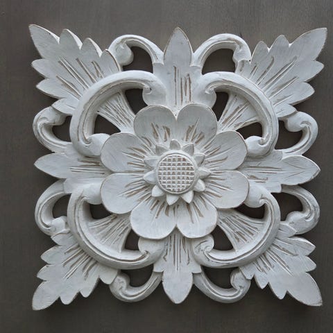 Kuvan seinäkoriste on täysin ehjä ja kaikki materiaalit on puuta. Korkeus on 55cm ja leveys 30cm.