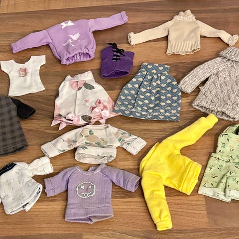 Pullipille vaatetta. Mahtuvat myös 27cm s obitsulle.