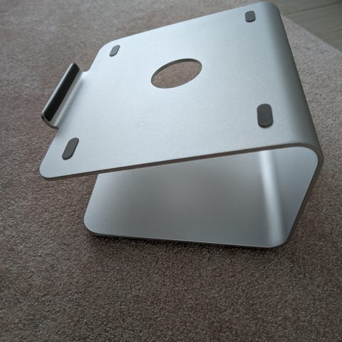 Näppärä moneen asentoon taittuva alusta läppärille, jossa USB-portista virtansa saava tuuletin.