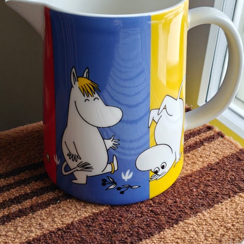 Kerran käytetty, virheetön Muumi Ystävyys kaadin. Tarraa ei ole. Korkeus 14,5cm.