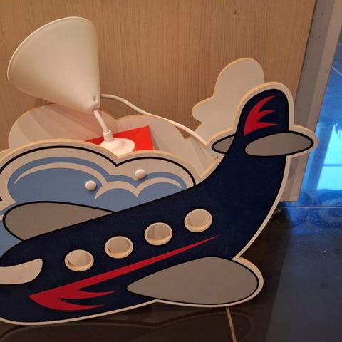 Myydään hyväkuntoinen pilvitaivas ja lentokone valaisin. Sähköjohdot tulee suoraan lampun kantaan (kts. toinen kuva).
