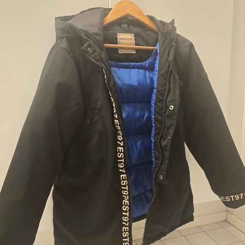 Myydään yhden talven käytössä ollut Minoti poikien musta toppatakki koko 158-164