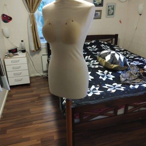 Punainen säädettävä mittavaatteiden malli, jossa useita säätömahdollisuuksia. Käytetään vaatteiden sovittamiseen ja muotoiluun. Soveltuu ompeluun ja vaatetuksen suunnitteluun.