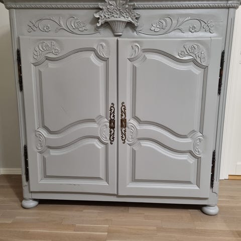 Vanha massiivinen ja todella painava astiakaappi. Itselle liian iso pieneen tilaan. Käytön jälkiä on, mutta edelleen yleisilmeeltään todella siisti.