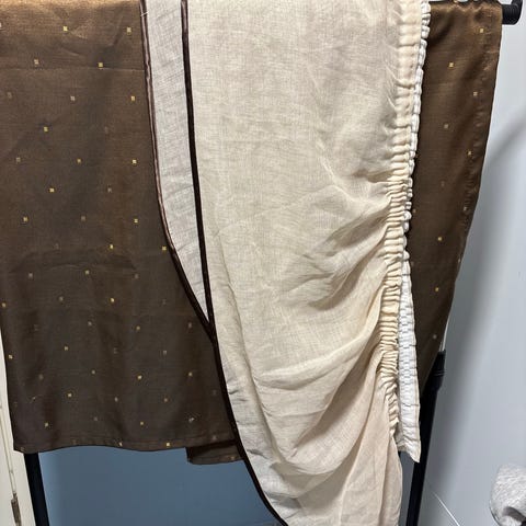 Kauniisti laskostetut "dallas" verhokapat. Upea hennonvihreä kiiltävä kangas. Ehjä, puhdas ja hajuton. Leveys noin 200cm ja korkeus noin 90cm suoristettuna ja kuvan mukaan laskostettuna noin 50cm.