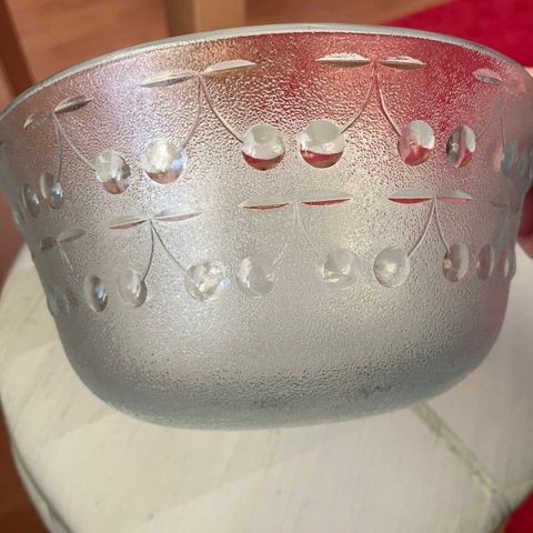 Kaunis lasi kulho, halkaisija 24 cm. Vain muutaman kerran käytetty, hyväkuntoinen, hieman voi näkyä ajan aiheuttamaa kulumaa. Nouto Vantaa.