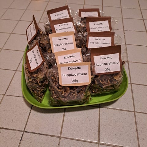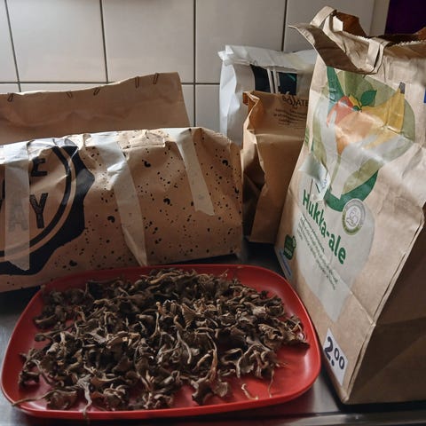 kuivattuja sieniä, suppilovahvero, metsäsieni, luomusieni, kuivattu sieni, suomalainen metsä, luonnontuote, sienet, sieniruoka, metsän antimet, termopussi, imatra, syksyn sato