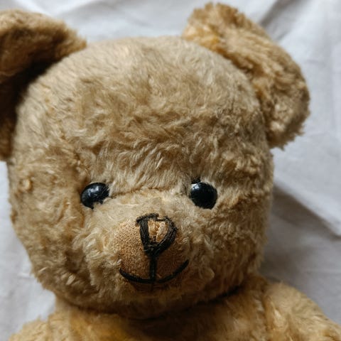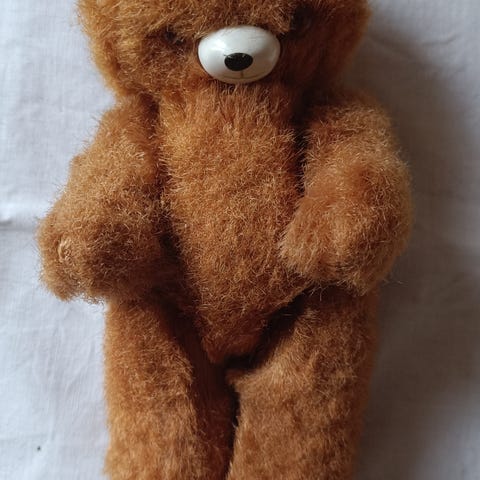 Tässä on todellinen "nallepuh", istuva wanha nallukka. Nallukan pituus n. 18 cm.