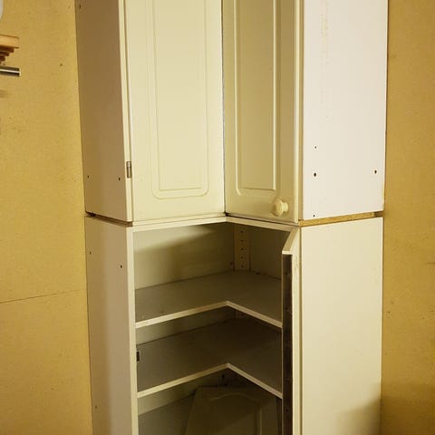 Puinen kulmakaappi. Pinnalla ja tasossa käytönjälkiä. Esimerkki kuvassa. Kaupat tehdään nopeimman hakijan kanssa. Ei pitkää noutoaika varausta.