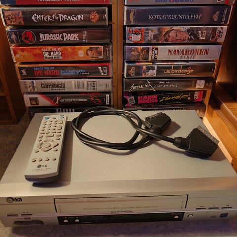Kunnossa oleva VHS video,DVD ei toimi,mukaan kaukosäädin,scart kaapeli,käyttämätön DELTACO adapteri.