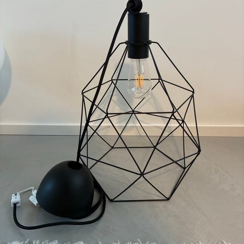 Käynttämätön Ikea kattovalaisin, musta metallilanka. Johdon pituus 140 cm. Lunnom-ledlamppu E27 , 400 lm , 2200 kelvin.