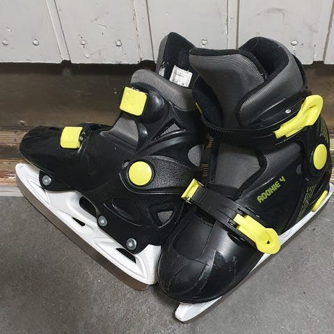 Tackla luistimet koko 27, kärjen kangas kärsinyt mutta ei haittaa käyttöä.
