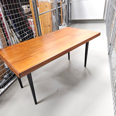 Luovumme tästä todella upeasta ja todella hyväkuntoiseta noin 60-luvun vintage tiikki sohvapöydästä.