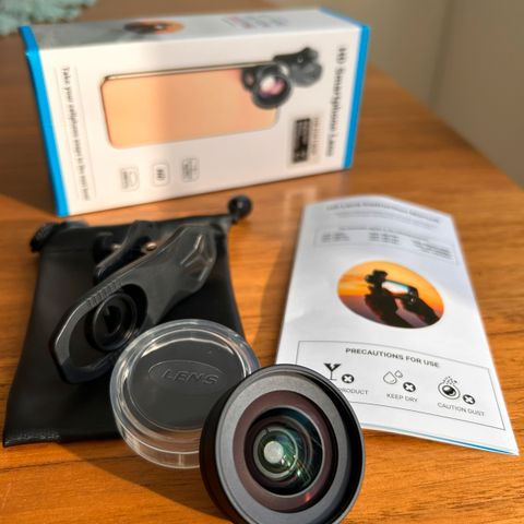 Linssi jäi käyttämättömäksi ja puhelimen särkymisen seurauksena ylimääräiseksi, joten se on kunnoltaan aivan uusi. Alkuperäinen myyntipakkaus on ehditty jo kierrättää. Jo loppuunmyydyn makrolinssin hinta oli ostohetkellä Verkkokauppa.comissa 169,99 euroa.