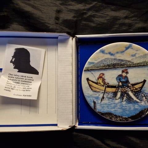 Arabia Andreas Alarieston lautanen 20 Inarinjärven rannalla 1983, halkaisija 12 cm, nouto käteisellä Joensuu-Ylämylly, OSTA KAIKKI no 20-23, YHTEENSÄ 30€
