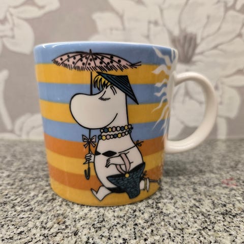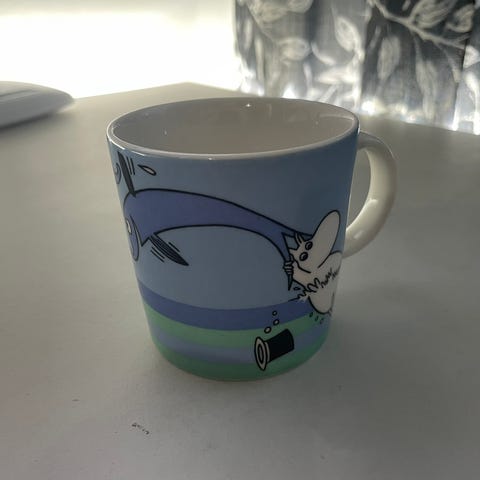 Myydään siistikuntoinen delfiinisukellus muumimuki. Tarraton. Hinta 50e.