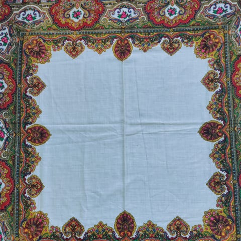 Isokokoinen kuvioitu vintage-huivi. Käytetty, mutta edelleen siisti ja ehjä sekä puhdas ja hajuton.