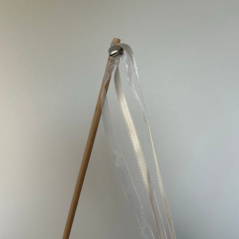 Häähuiskuja tai mihinkä tahansa juhliin huiskuja 45kpl. Vihreä valkoisia silkkinauhaisia. Puiset kepit n 35cm.