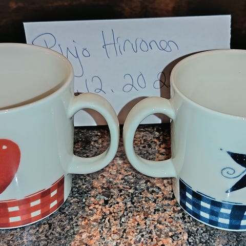 Vuodelta 2006 peräisin oleva Minna Immosen suunnittelema Joulun Tähti -muki. Tehty Teema-mukiin, jonka vetoisuus 0,3l.