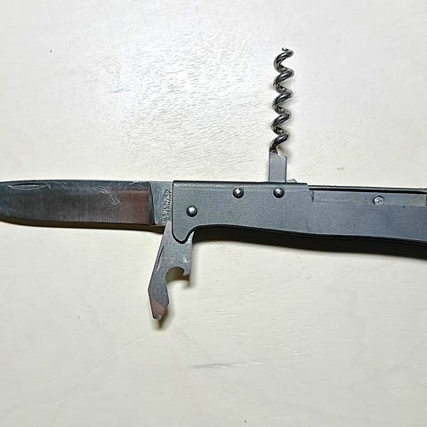Kunto: käytetty ja vähän patinoitunut. Hyvässä terässä, terän kärki hiukan pyöristynyt. Kotelo siisti.